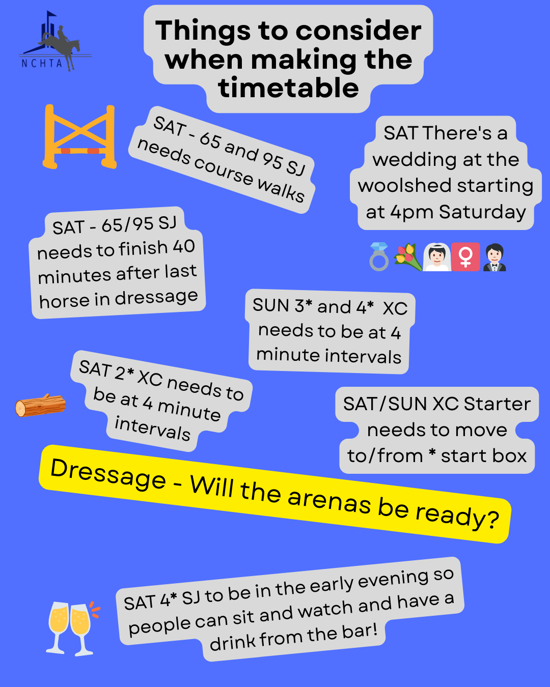 With this in mind, the schedule for the upcoming event is being adjusted, and entries will be limited so that we can manage with three fewer dressage arenas. We will manage a waiting list so that hopefully, everyone who wants to come can.
