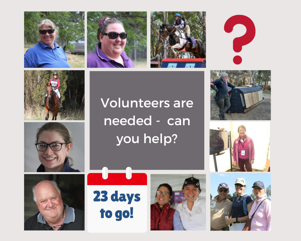 As usual – it’s volunteers that make everything happen – everyone from the XC starter, to the person catering for the officials, to the dressage penciller – are all volunteers – and more are needed – please use this link to sign up: https://signup.com/go/UZRDoZV