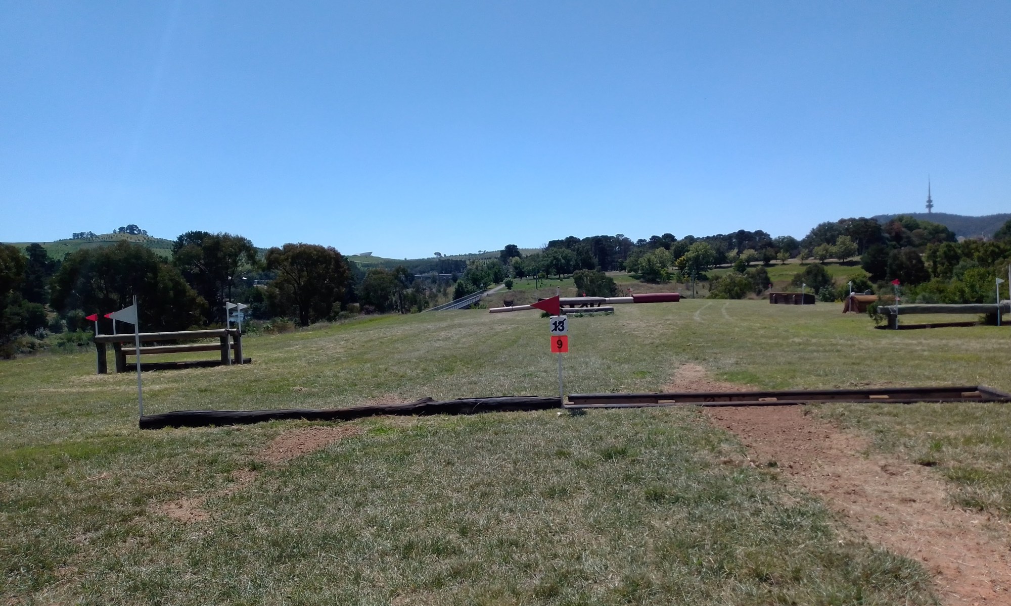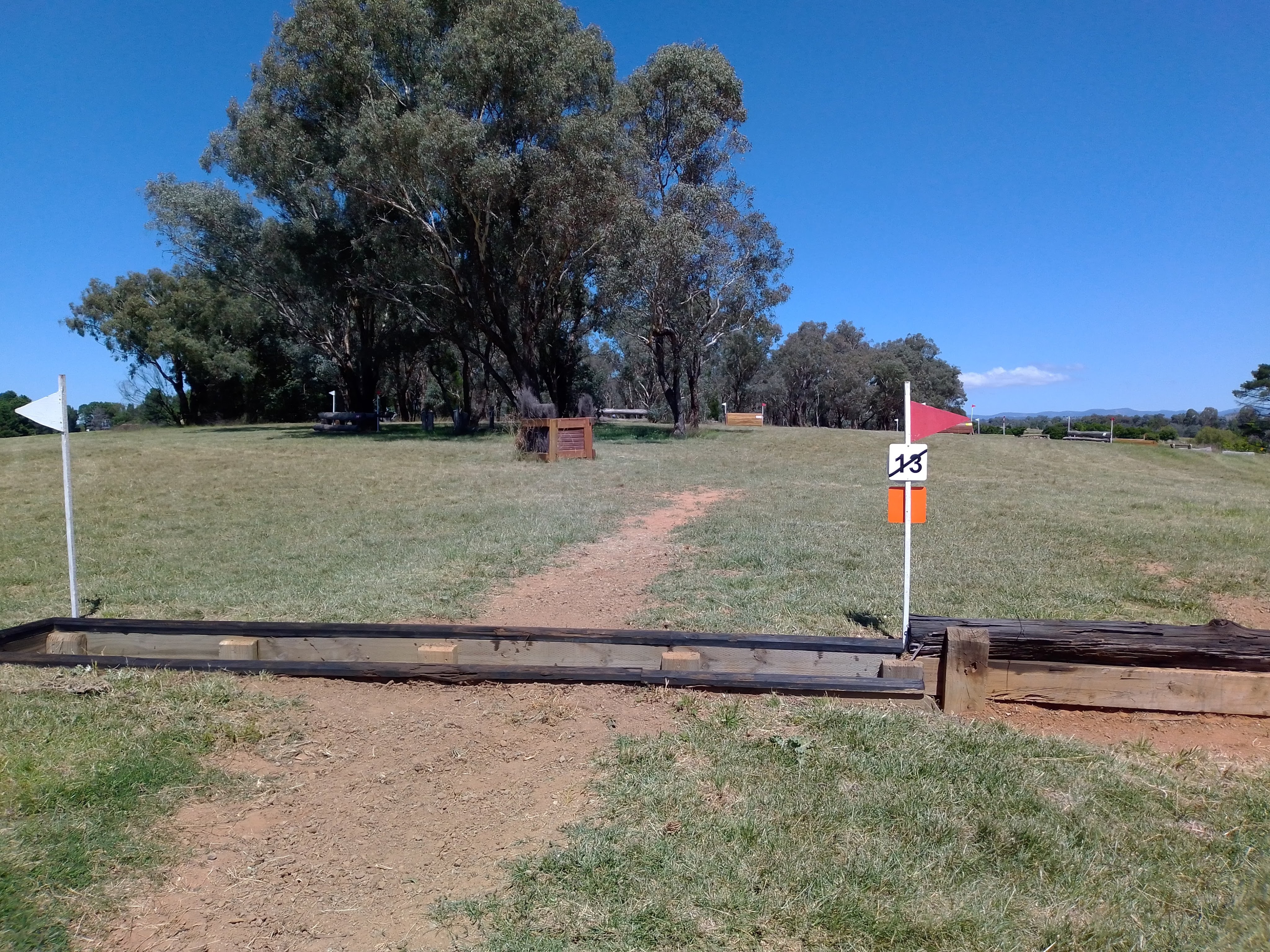 This is called a black flag…. odd really when the flags are still red and white – however, we’ve taken the liberty instead to place a black stripe over the number to indicate that there is an option on this jump. Not because it’s 13 and unlucky (there’s no such thing as luck according to Sam Watson from Equiratings – but I digress). This is because in the EvA80 course, this is an open ditch. Riders have the choice of the direct route (the quickest) or the option (slower). The option for this jump is a step down in the opposite direction. So it’s a safer option if you’re concerned about the ditch, but will take longer.